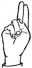 На ћирилици написано ЈАБУКА ПРИБИЋЕВИЋ састоји се из 16 слова [?]. Исписано ћириличном једноручном азбуком за глувонеме: